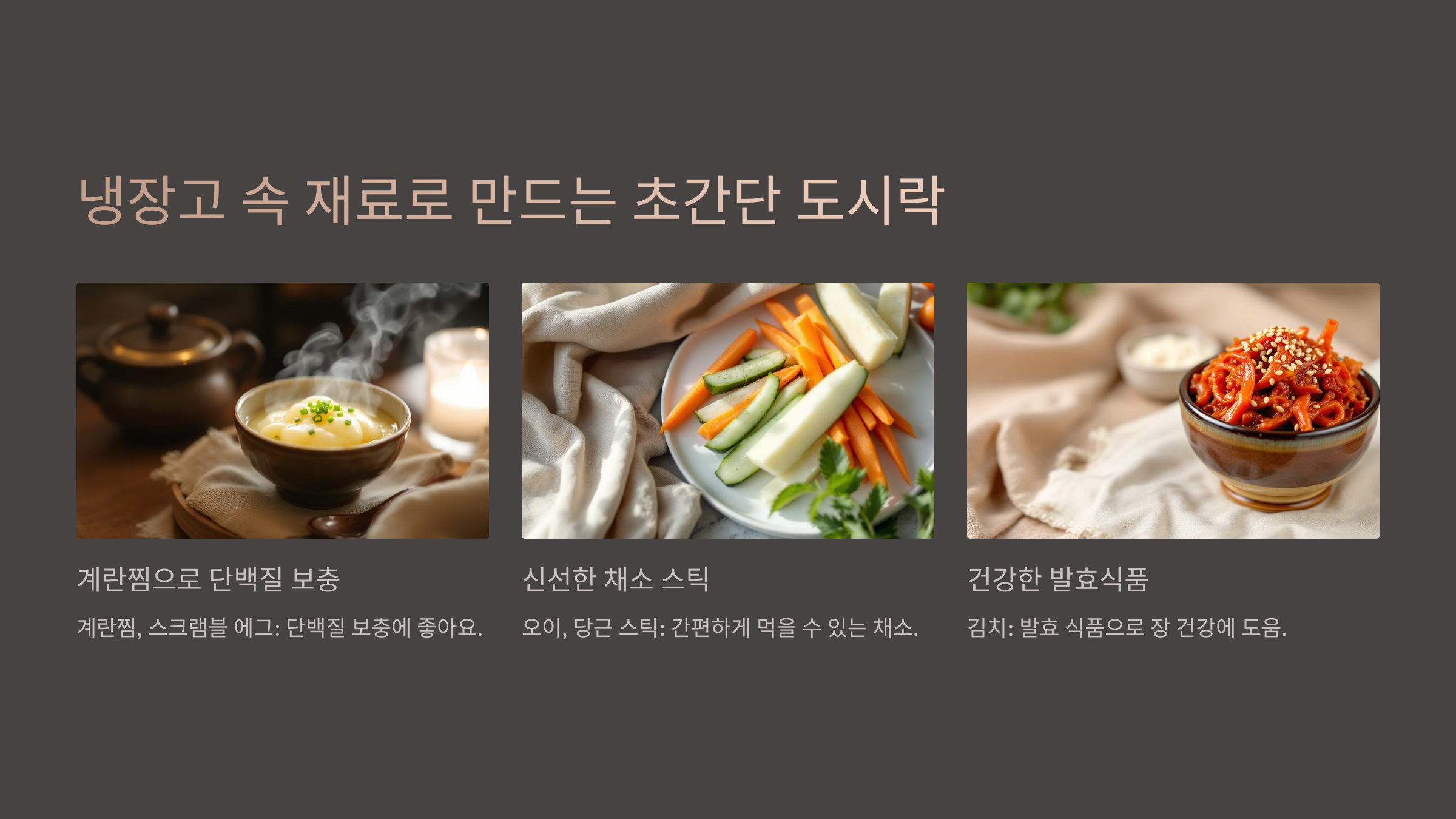 바쁜 아침, 복잡한 요리는 부담스럽죠. 하지만 냉장고 속 재료만으로도 훌륭한 다이어트 도시락을 만들 수 있어요!