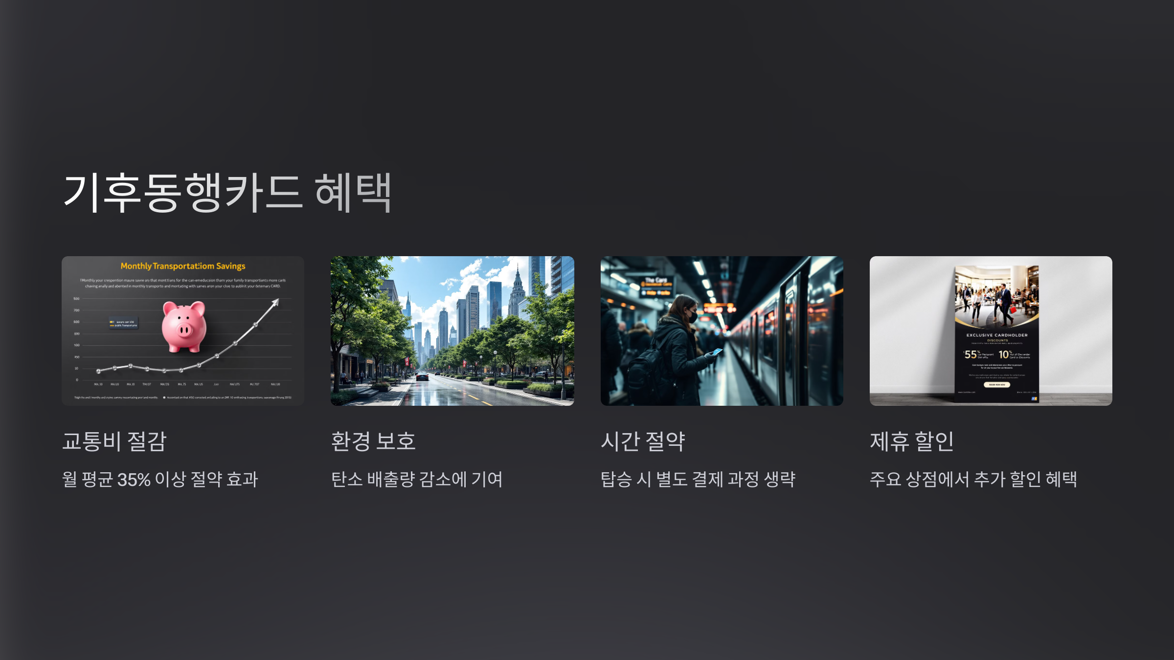 게다가 기후동행카드는 단순히 비용 절감 효과뿐만 아니라, 교통비 걱정 없이 자유롭게 대중교통을 이용할 수 있는 심리적 안정감도 제공해요. 😊